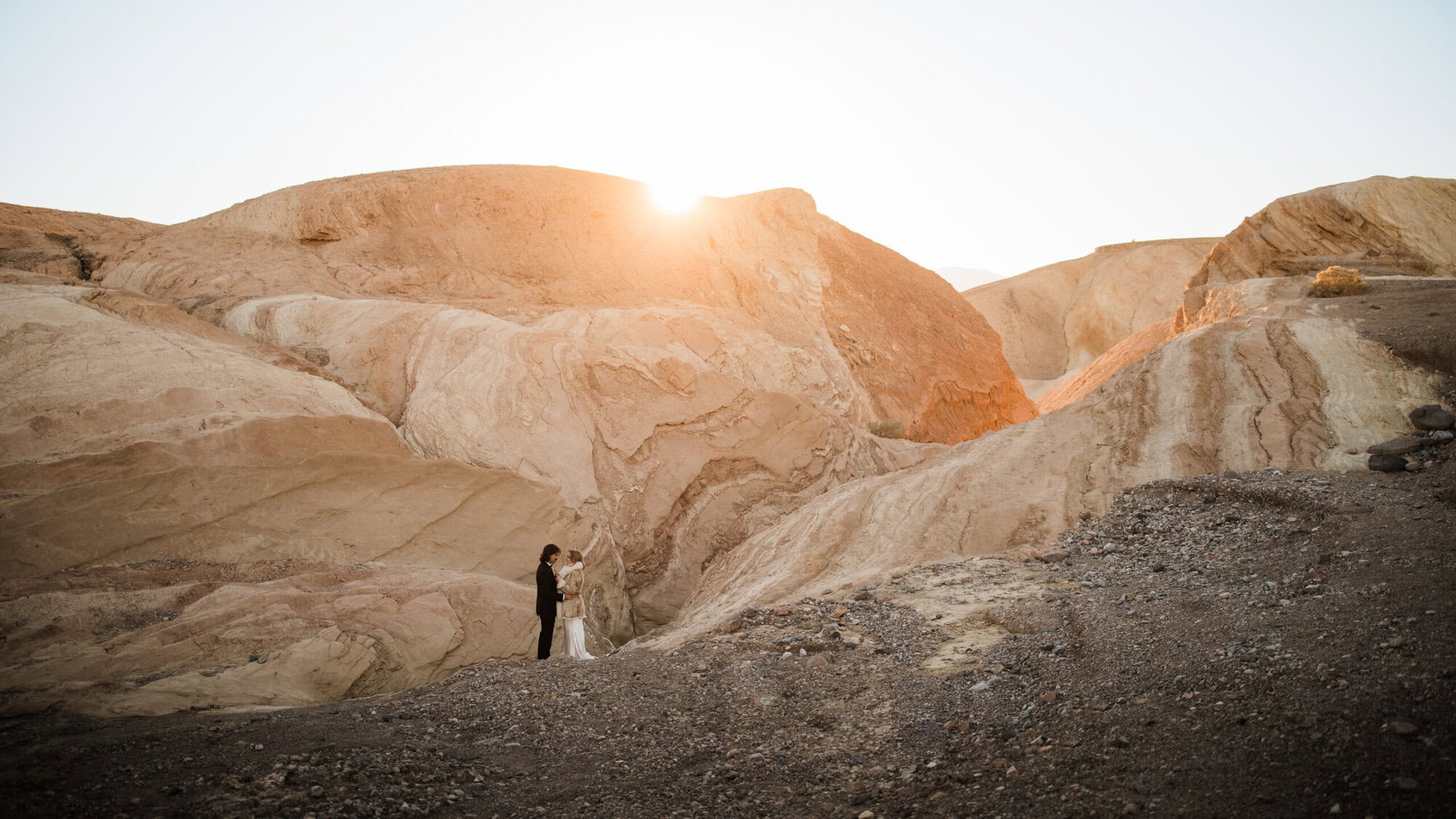 Also, when it comes to everyday weather in Death Valley, rain is pretty much a non-issue (I mean, it is a desert, so not shocking). You’re looking at mostly blue skies and sunshine. That said, it can get really windy, especially in the spring. So if you’ve got anything delicate planned for your hair, veil, or outfits, you’ll want to keep that in mind. You might need a little extra patience or some clever hacks to make it work (and yes, I can help with that!)